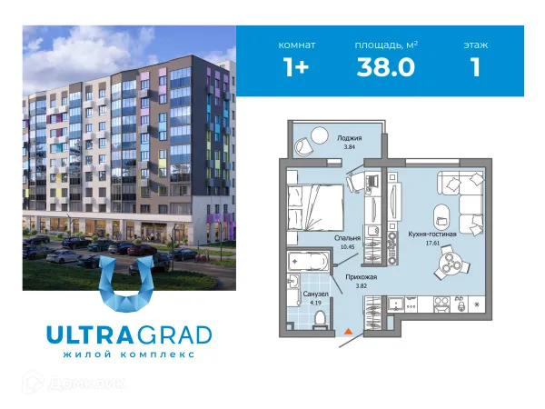 1 комн. квартира в Ульяновске в ипотеку от 44 096 руб/месяц