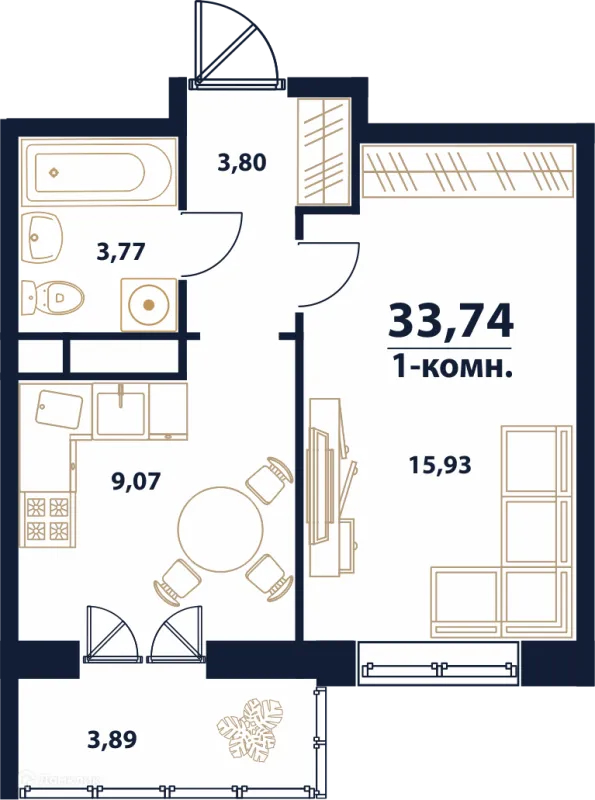 33.74 м²