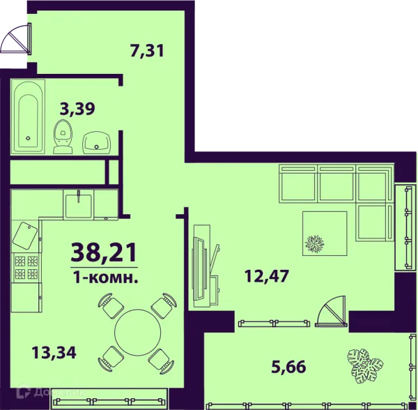 1 комн. квартира в Ульяновске в ипотеку от 26 139 руб/месяц